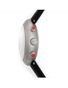 44mm case (wears like a 41mm watch), silicone strap. 50m water resistance, screw-down caseback.