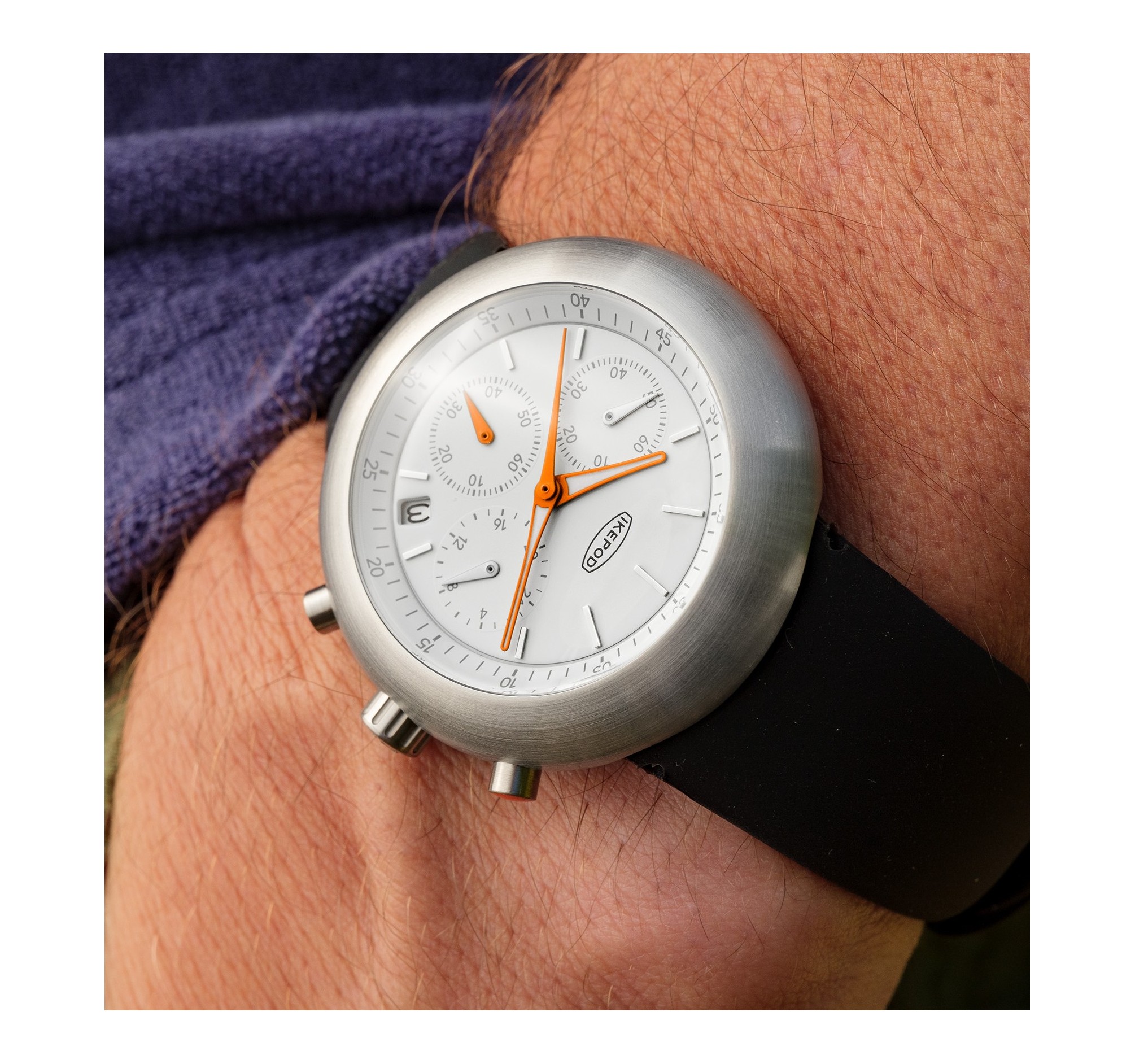 Discover the new generation of the legendary Chronopod. This exclusive creation combines the expertise of the Seiko VK63 chronograph movement with revolutionary design signed by Emmanuel Gueit.