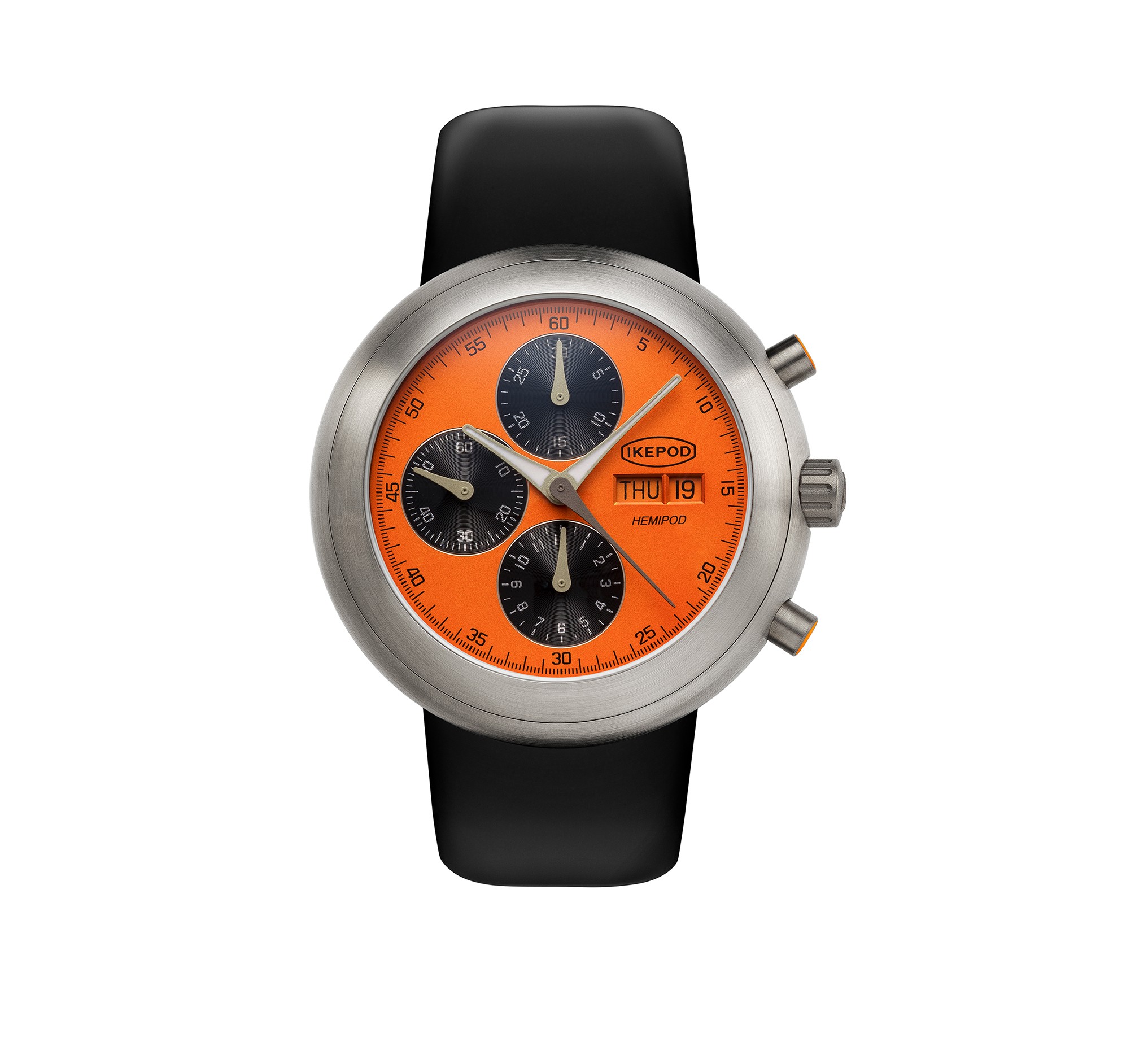 The iconic 1997 Hemipode is back more reliable and now more affordable. The famous Ikepod look now with a DAY DATE.