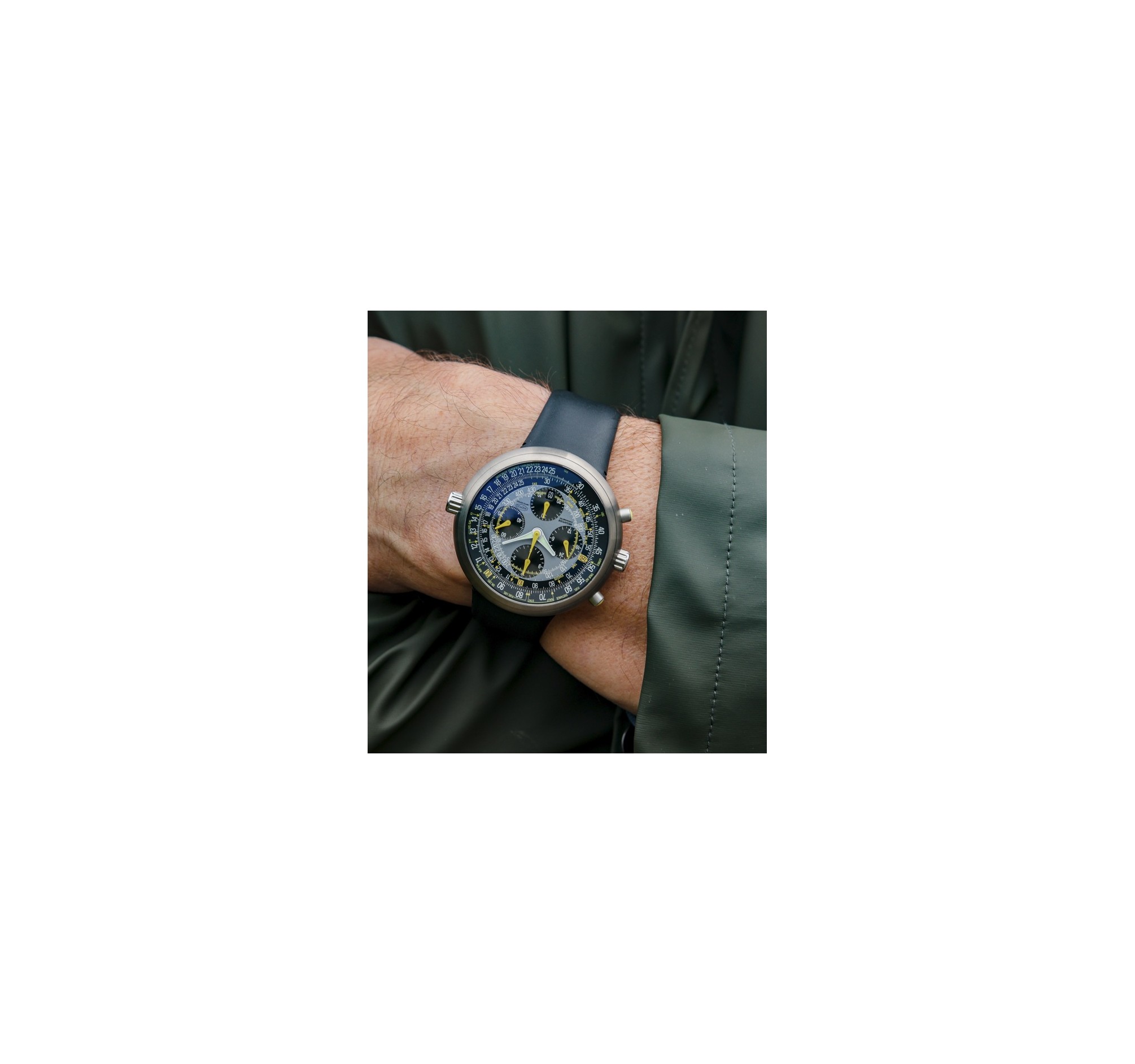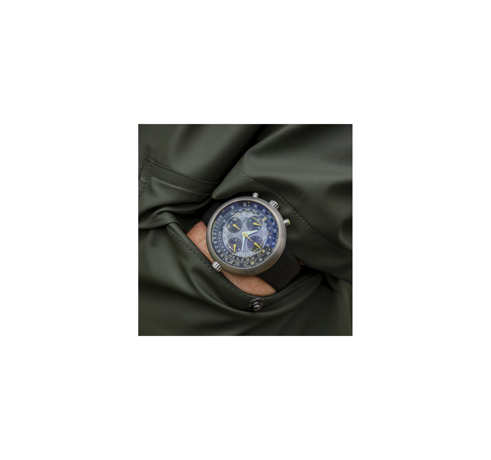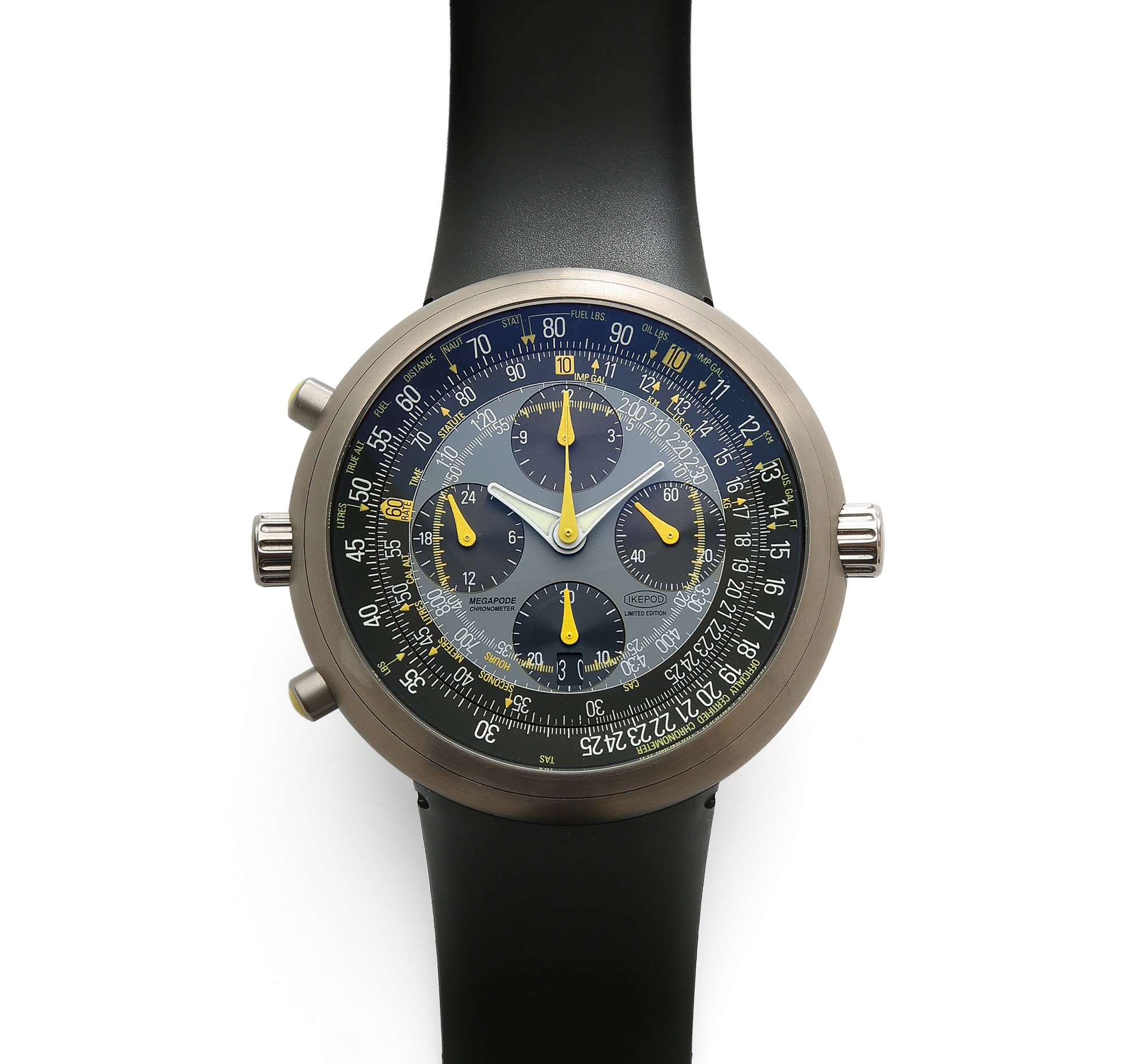 La montre est livrée avec sa boite de l'époque. Une belle opportunité de posséder une Megapod neuve, jamais portée, bracelet pin jamais reproduit depuis.