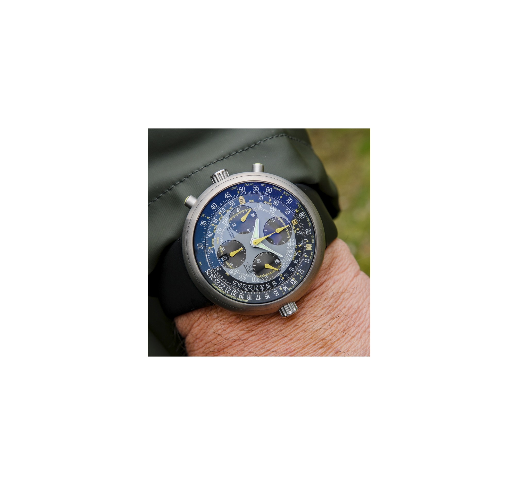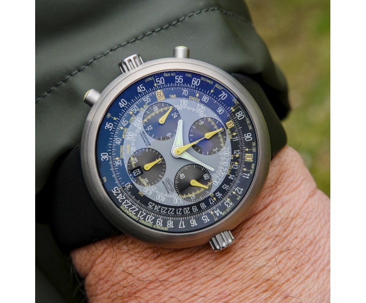 La boite fait 47mm, cette célèbre "fliyng tool" est équipée d'une règle à calcul, permettant de réaliser de nombreuses opérations en vol.